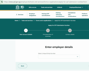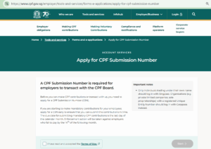 1. Visit the CPF Board website to apply for CPF Submission Number. – https://www.cpf.gov.sg/employer/tools-and-services/forms-e-applications/apply-for-cpf-submission-number