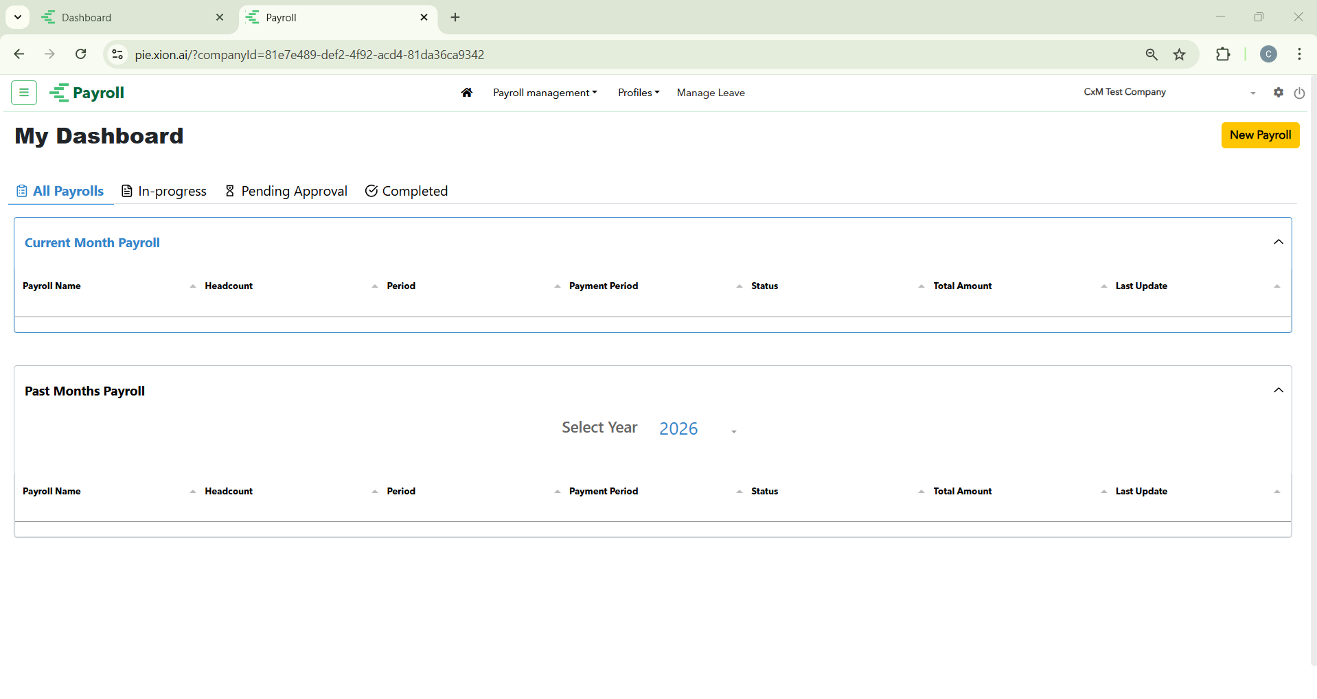 - New Payroll Button: Look for the bright yellow button in the top right whenever you are ready to start a new month’s pay cycle.