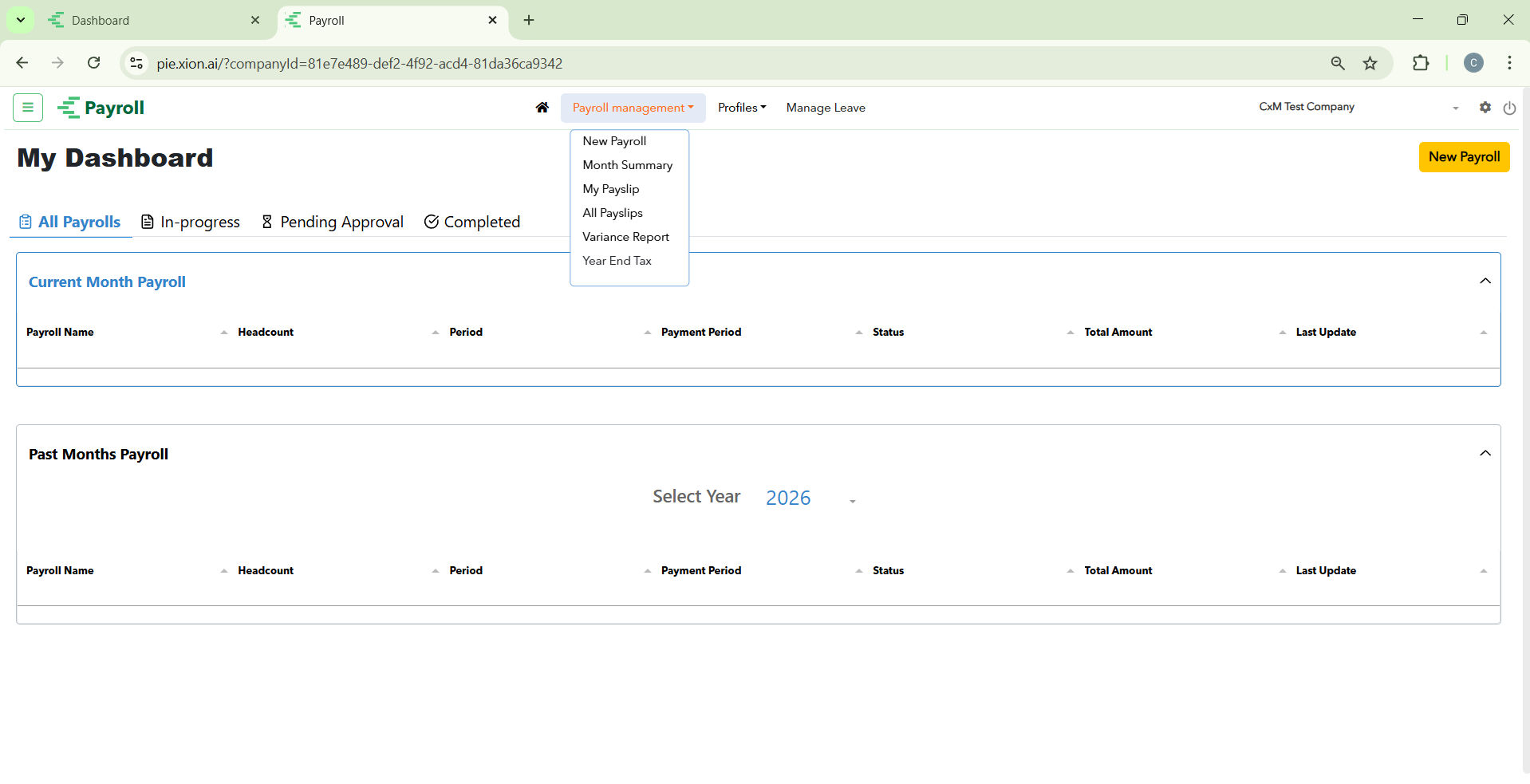 - Completed: Your archive of finalised payrolls that have been fully processed.